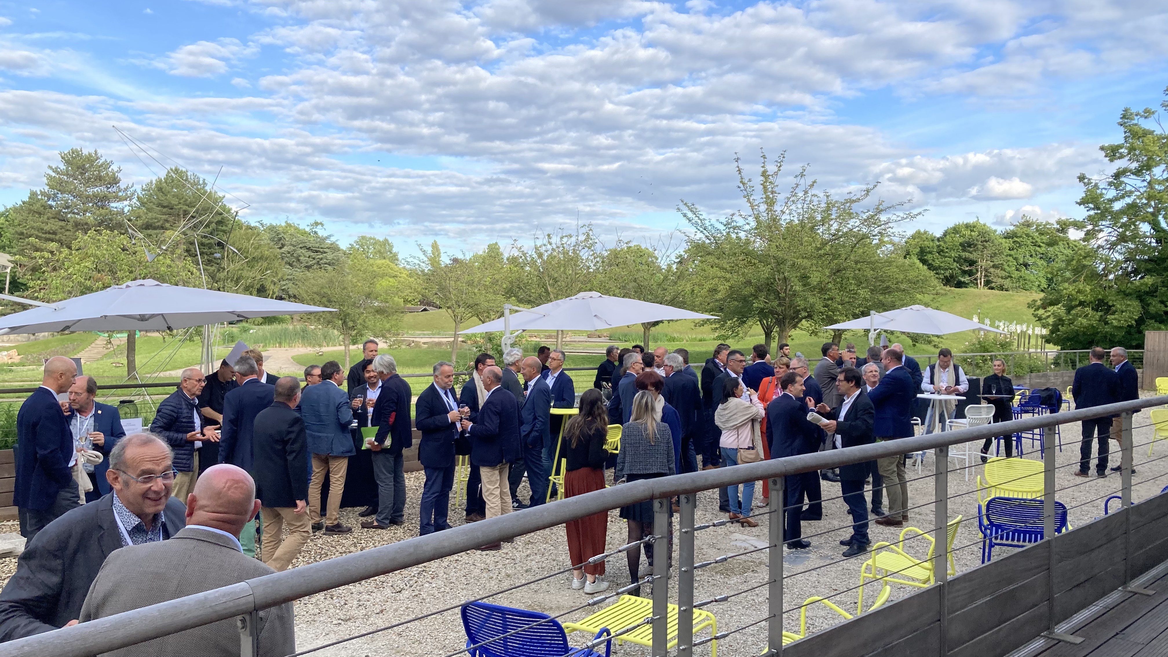 Toiles lycra, simples parasols, chapiteaux… Nous avons tout imaginé pour permettre aux congressistes de profiter de la vue qu’offrait le lieu sur le parc, quelque soit la météo du jour. Finalement, nous avions un plan A, un plan B, un plan C et un plan D selon les conditions météorologiques.